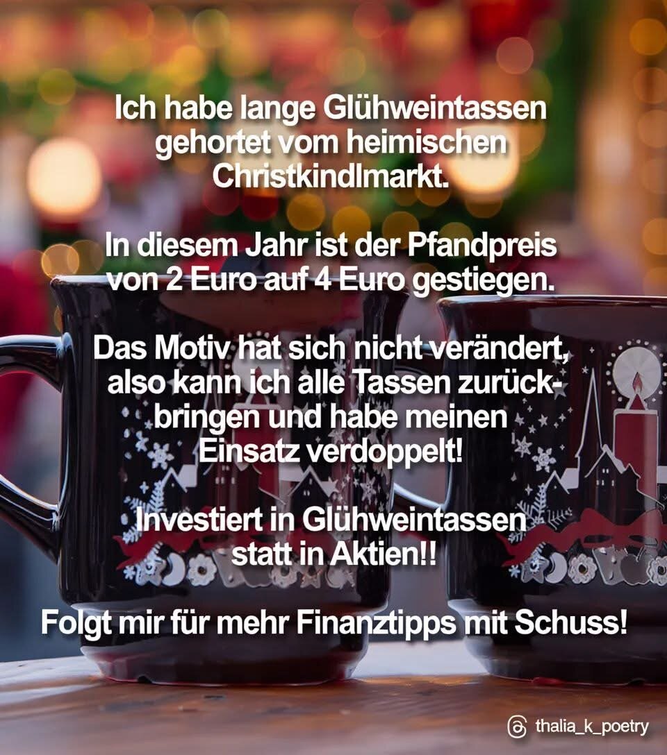 Die letzten Meldungen vom STATISTISCHEN BUNDESAMT, die Stadt Hagen betreffend: Absatz kalter Pizza: +80% Absatz warmer Cola: +45% Absatz schwarzer Hornbrillen: +20% Absatz schwarzer Rollkragenpullis: +20% Absatz frischem Benzins: -70% Absatz Schmiermittel: -58% Die Daten wurden im Rahmen der lokalen Studie "Vom Schrauber zum Nerd 2025" erhoben. BB, Generalinspekteur2 points