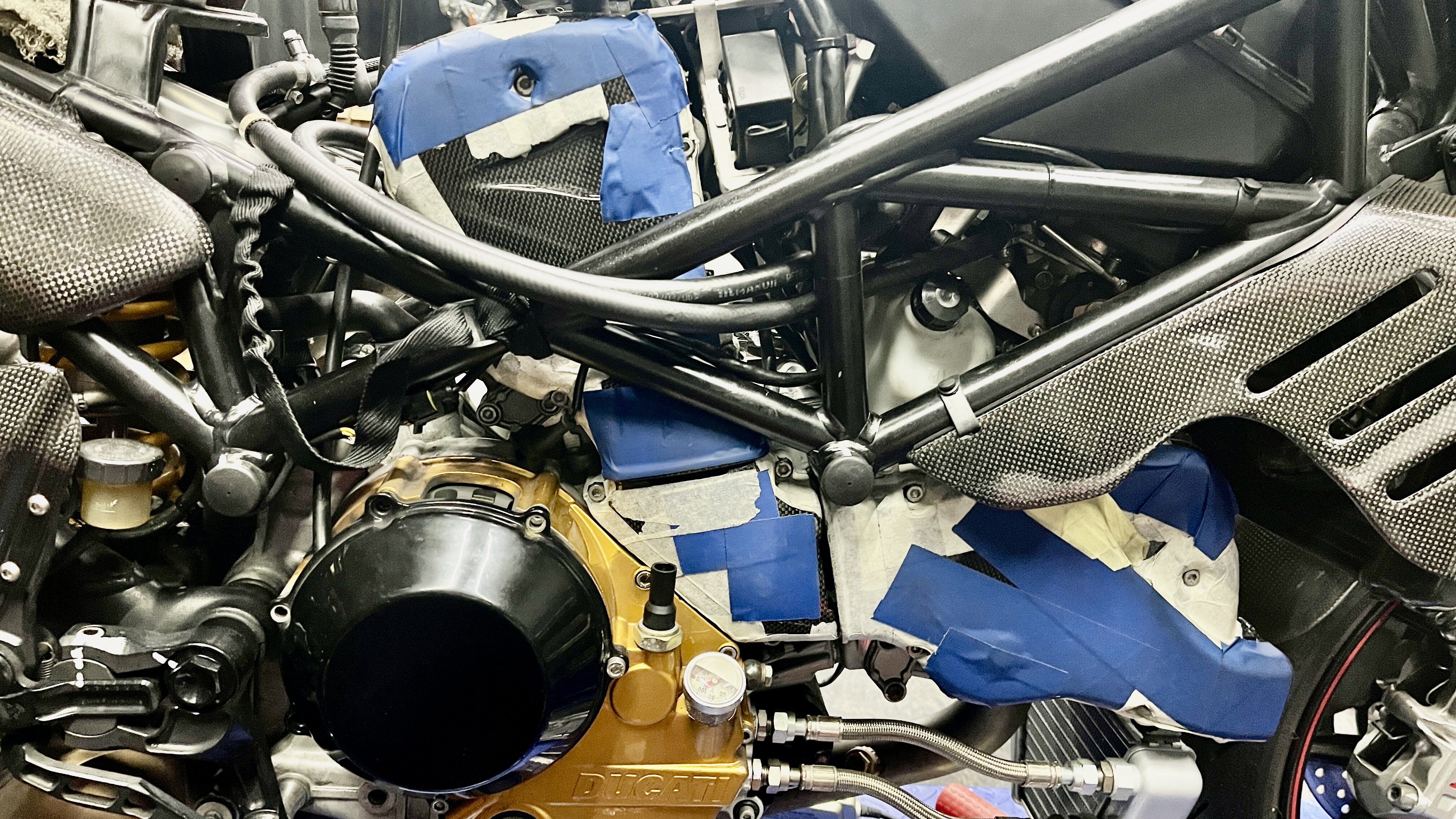 @carbon-michel Vielen Dank für deine Einschätzung. Meine Hoffnung ist, dass das Anlaminieren an der Abdeckung der Zahnriemenwelle beidseitig passieren kann - Idee: plan-parallele Verlängerung des Profils um 2,5-3mm zur Montagekante zum Motor; Tunnel am Rahmenkreuz am stehenden Zylinder ausschneiden ohne zerschneiden - Idee: Tunnel von innen nachlaminieren, Struktur bleibt stabil und da es ein blinder Raum als schräger Übergang ist sollte innen genug Platz für den Tunnel sein. Kannst du dir das vorstellen?…ich werde nochmal Fotos von der OEM- und der 999R-Zahnriemenabdeckung in verschiedenen Sichtachsen machen. Solange das Nachlaminieren wieder glatte Carbonoptik ist sind für mich Schnitte weniger von Bedeutung - die Region aus idR auch Schattig. :)