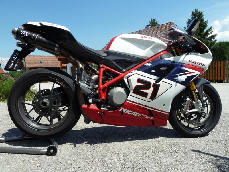 Hallo Zusammen, ungerne muss ich mich von meiner originalen 1098R Bayliss Edition trennen! Dies ist die Nr. 94 der auf 500 limitierten Serie. Erstzulassung: 04/2010 km Stand: 1171 km (nur Schönwetter km) Ehemaliger Neupreis: €45.000,- Standort: Österreich (nähe Linz) Top gepflegt! Einmalige Gelegenheit! Bitte um ernsthafte Kaufangebote!