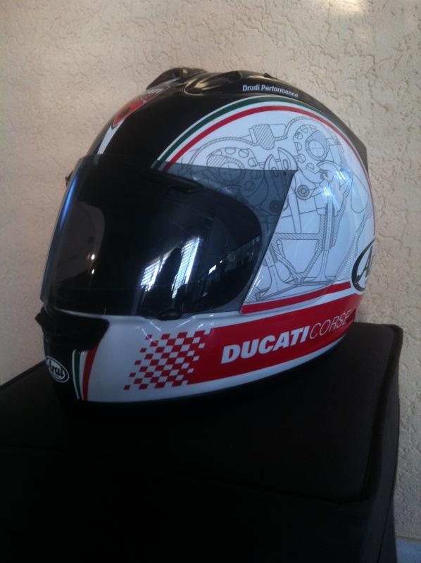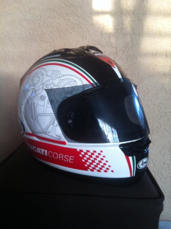 Verkaufe Arai Chaser-Helm von Ducati. Hab den Helm gewonnen und keine Verwendung dafür. Helm ist neu und unbenutzt. Schutzfolie ist noch auf dem Visier. Größe XL (7 1/2 - 7 5/8) 61-62 cm Neupreis bei Ducati: 570 Euro (Preisschild ist noch drauf) Bitte nur ernstzunehmende Preisvorschläge, danke. Gruß, Andreas