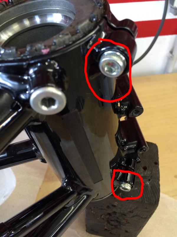Und jetzt eine Frage an die Experten unter Euch, die beiden Schrauben, die auf dem nächsten Bild zu sehen sind, müssen die eingefettet werden, oder bekommen die Locktite? Mit welchem Anzugsdrehmoment müssen sie angezogen werde? Für Antworten wäre ich wirklich dankbar, da ich aus dem Werkstattbuch nicht schlau werde.