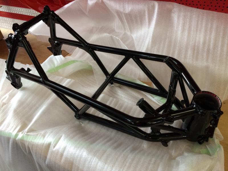Heute war es soweit, dass Excenterrohr wurde in den frisch gepulverten Rahmen eingesetzt. Hier der Rahmen: