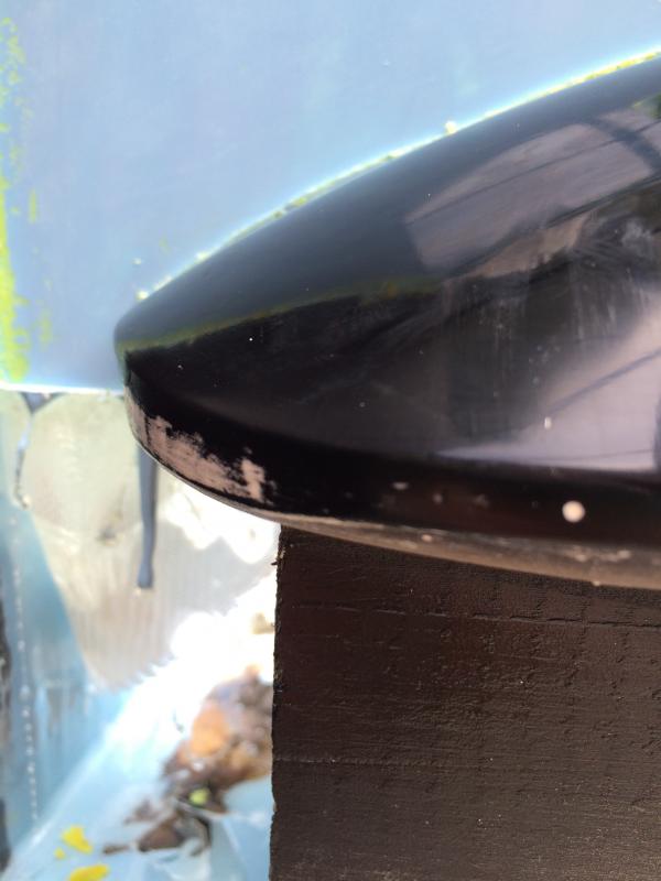 Auf Anfrage bei meinem Carbon Spezialisten, sagte man mir das ich hätte 2K Lack verwenden müssen. Also habe ich schnell ein neues Teil gegossen und in Form geschliffen und es dann zum Autolackierer gegeben. Auf ein neues also. Try and Error.