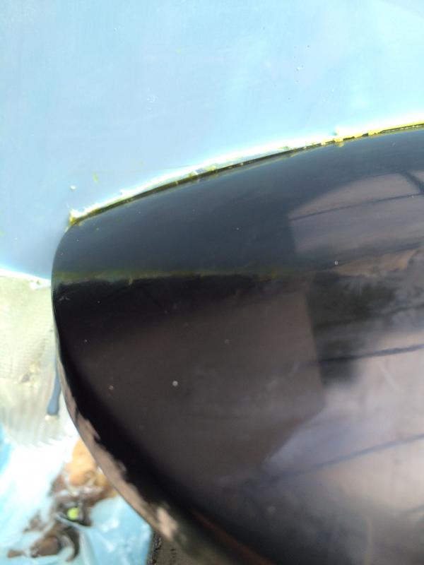 Es hat mal wieder lange gedauert, aber es geht weiter. Nach dem ich meine Positivform vom Schutzblech mit Autolack aus der Sprühdose lackiert habe und sie dann in mehreren Stufen bis 12.000 Schleifpapier aufpoliert habe, fing ich an die Negativform aus Epoxydharz und GFK zu bauen. Die erste Schicht fing nach dem Auftrag an Löcher zu bilden