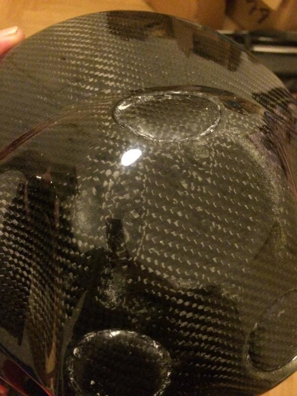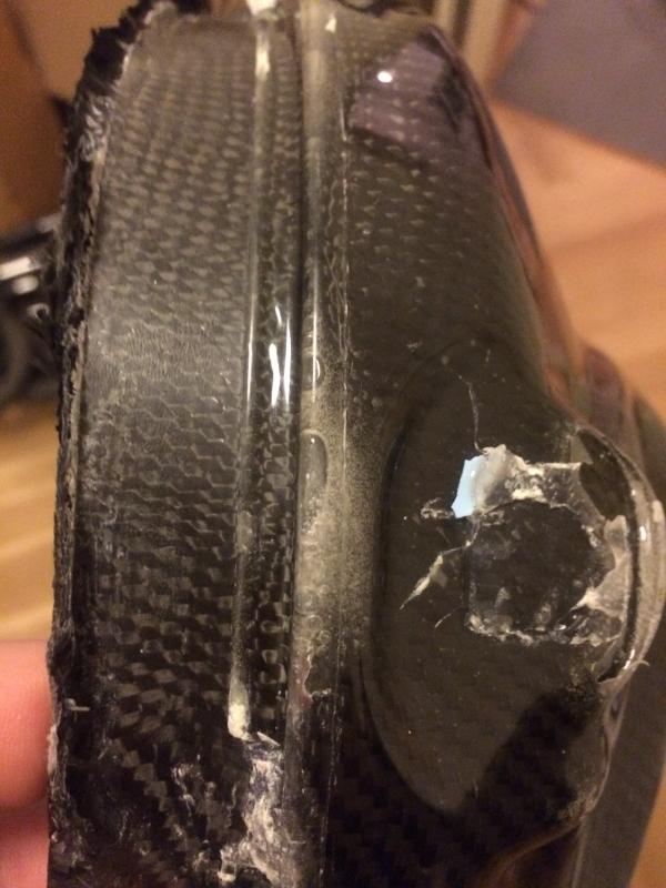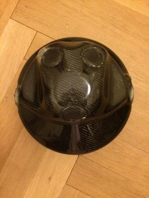 Wie versprochen hier die Fotos meiner Carbonlampe. Dadurch das die negativ Form scheinbar doch sehr komplex ist, ist es mir trotz vacuum nicht wirklich gelungen das Gewebe an allen Stellen gegen die Form zu pressen. Hier das Ergebnis