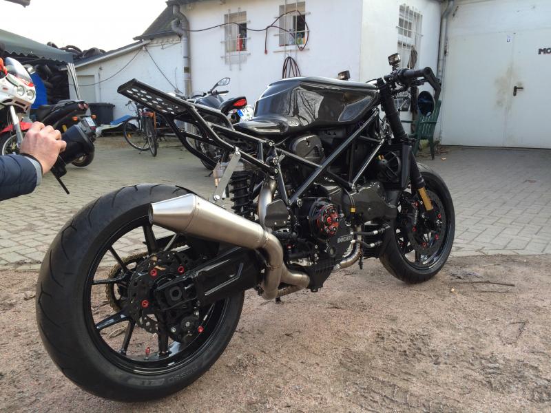 Ein Rückschlag folgt den Anderen. Nach dem meine DUC nun 3 Monate beim Elektriker stand, habe ich sie Gestern wieder abgeholt, natürlich ohne das etwas geschehen ist. Jetzt, mache ich sie so weit fertig, dass wirklich alles dran ist und dann geht sie zum Kabelbaumspezialisten JOGO!!! Hätte ich mal von vornherein machen sollen, dann hätte ich 3 Monate gespart. Die Lampe entsteht jetzt in einem 3D Programm. Die negativ Form des Schutzbleches wird auch gerade gefräst, somit verbleibt noch der Höcker und die Sitzbank, sowie eine 3D gedruckte Halterungen für die Batterie, den Gleichregler und das Anlaserrelais. Kommt alles unter den Höcker. Zumindest habe ich sie Heute in die Sonne geschoben und mal ein paar Fotos gemacht, die ich Euch nicht vorenthalten möchte. Kritik und Anregungen sind willkommen.