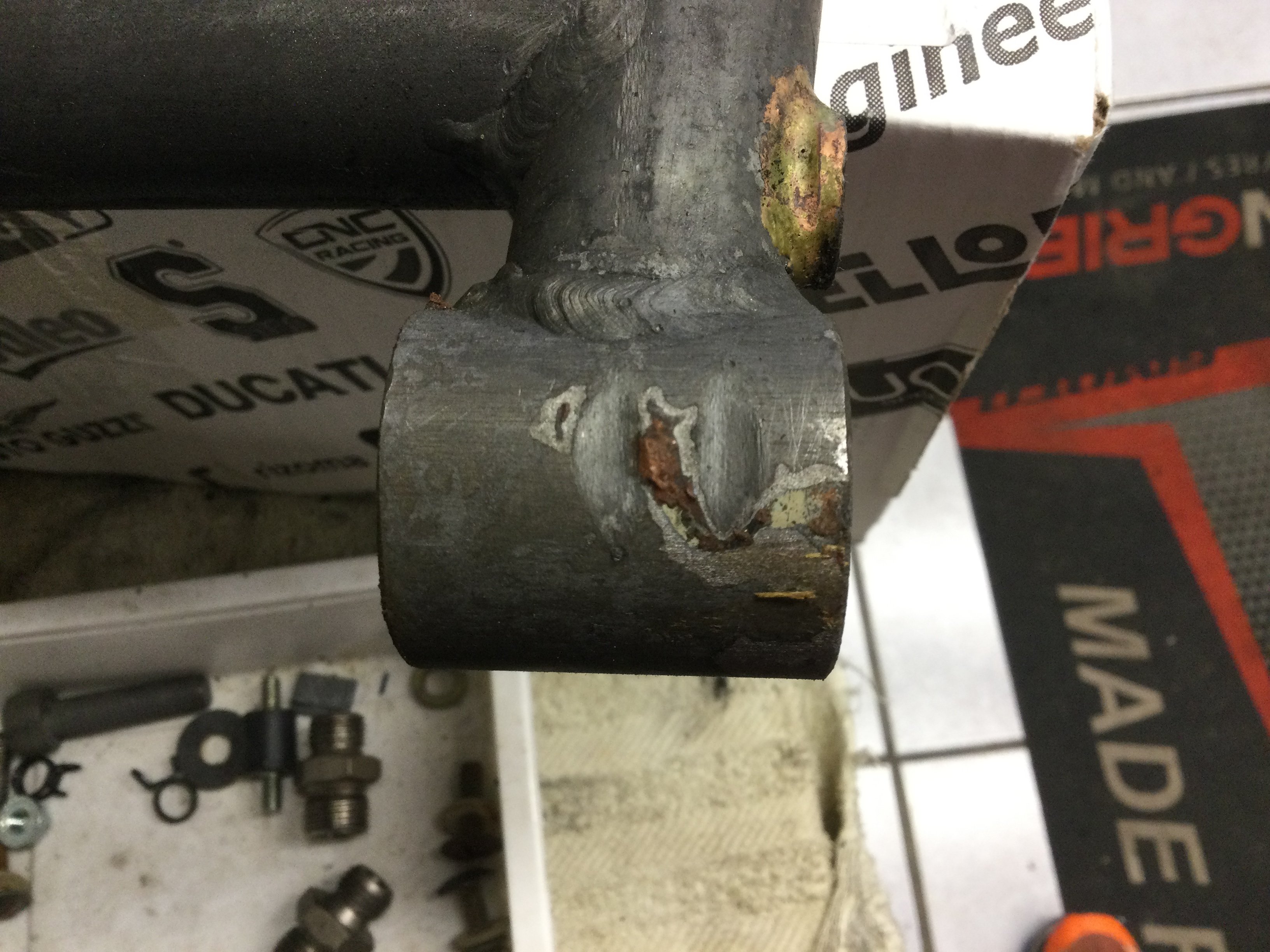 Jetzt kann der Rahmen ordentlich verschweißt werden. Die Unebenheiten im Rahmen und die ketteneinlaufspuren können mit Hartlot gefüllt werden. Danach kann alles verschliffen werden