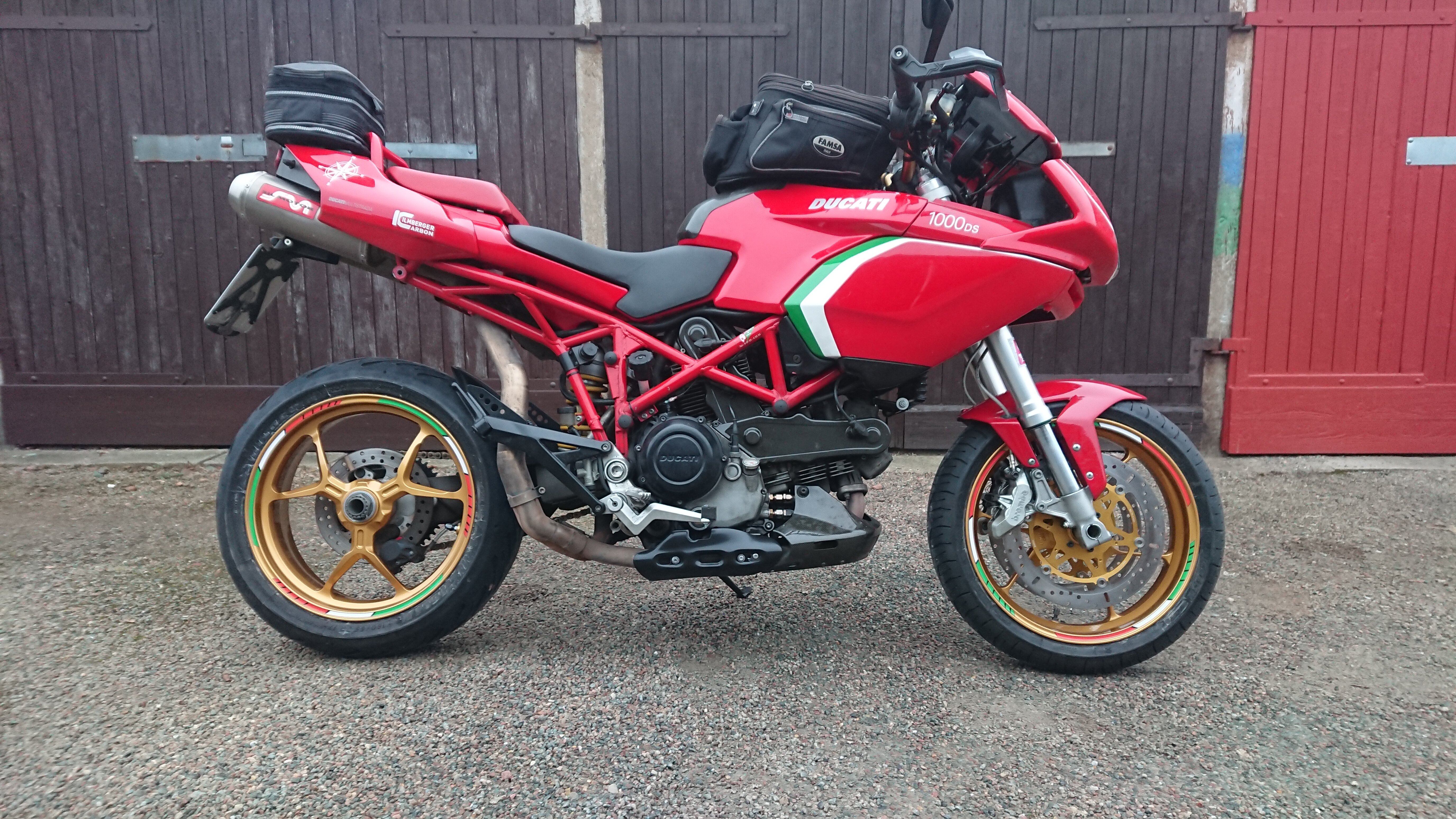 Evtl musst du noch die Breite der Multistrada Felge messen ( von Radlager außen zu Radlager außen ). Weil du dann weißt ob du neue Raddistanzen brauchst.