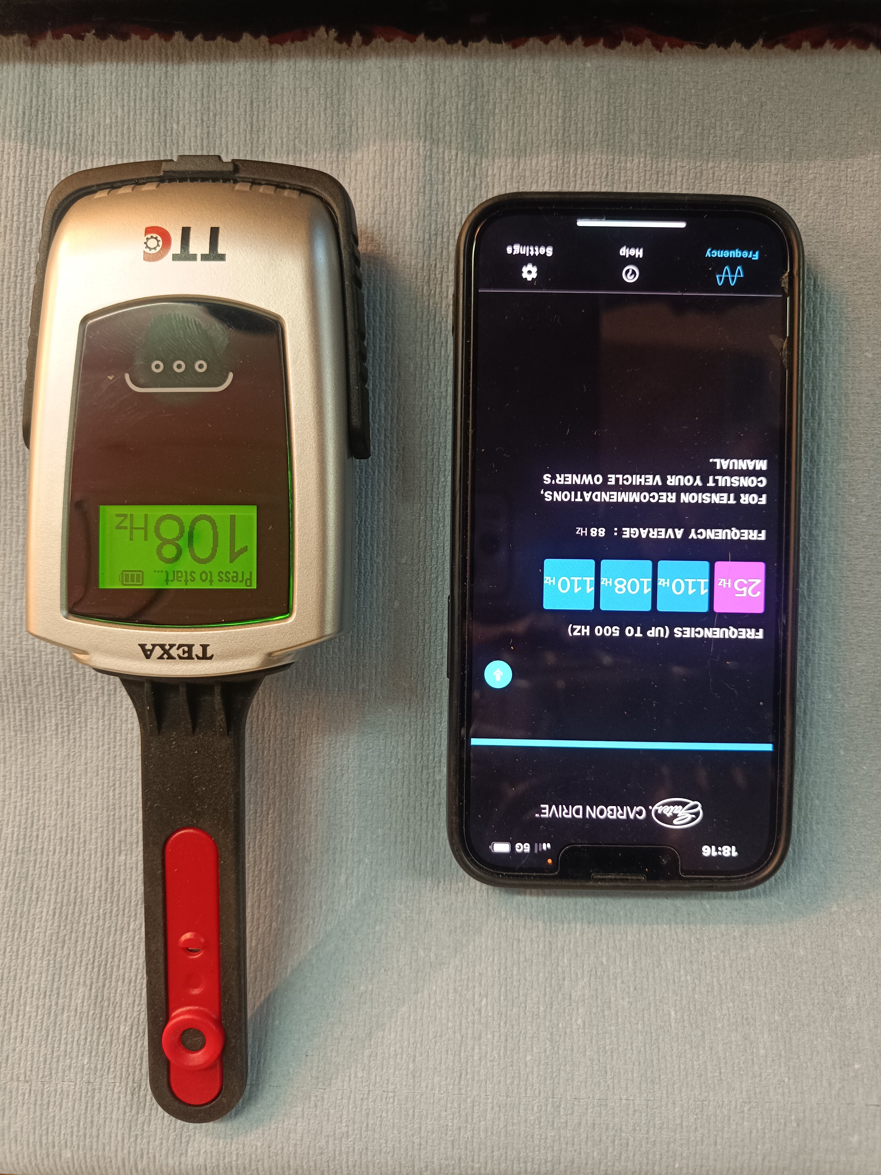 -Ist der Messwert zur Carbon Drive App merklich (+/- 10Hz.) abweichend ?