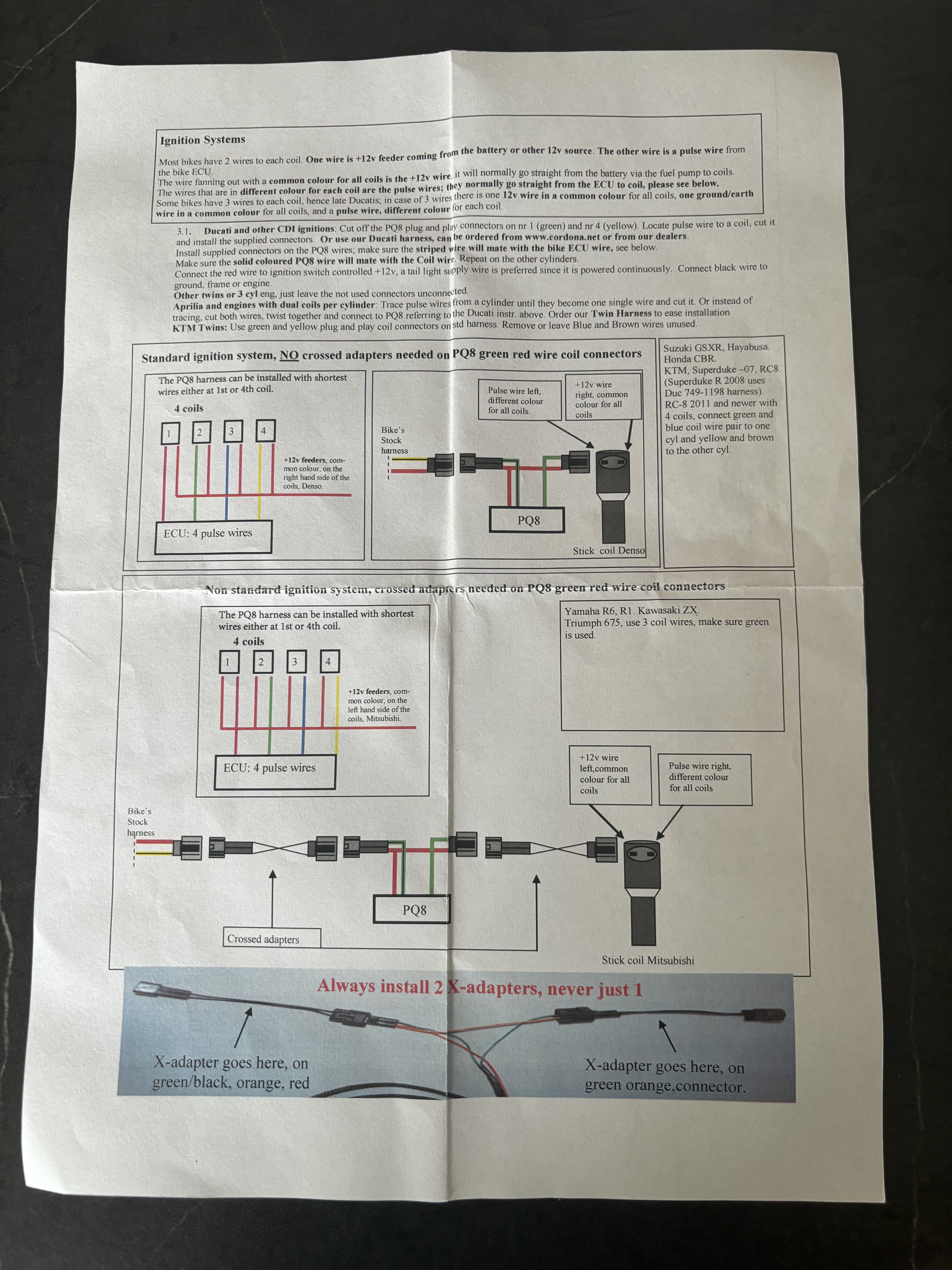 Das Gerät hier versteh ich noch nicht ganz. Du stöpselst die originalen Stecker, die auf die Zündspule gehen, in den Kabelbaum des PQ8 und bekommst von dem einen Stecker für die Zündspule zurück?