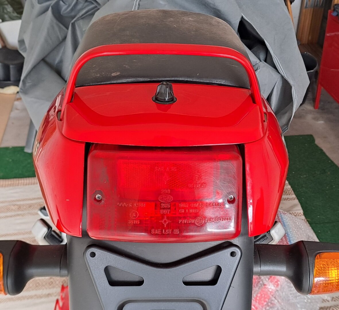 Bevor Tank und Verkleidung zur Sanierung bzw. Lackierung rausgehen, wollte ich mal alles zusammenstecken. Der Heckbereich, wo Seitenteile, Bürzel, Griff und Sitzbank aufeinandertreffen, ist ein totales Fiasko. Ich hatte jetzt keine Piëch-Nullspalte erwartet, aber so schlimm muss ja nun auch nicht sein. Da muss ich mal ein paar Fotos aus dem Netz zum Vergleich studieren. Am Sitzbankschloss gibt es einige Schrauben, vielleicht lässt sich damit was feintunen? Was mich am meisten irritiert ist, dass sich der Schlüssel kaum reinstecken lässt. Geschweige denn drehen. Die Riesenspalte rund ums Rücklicht hab ich vergessen zu Fotografieren. Vielleicht bin ich auch einfach zu pingelig.