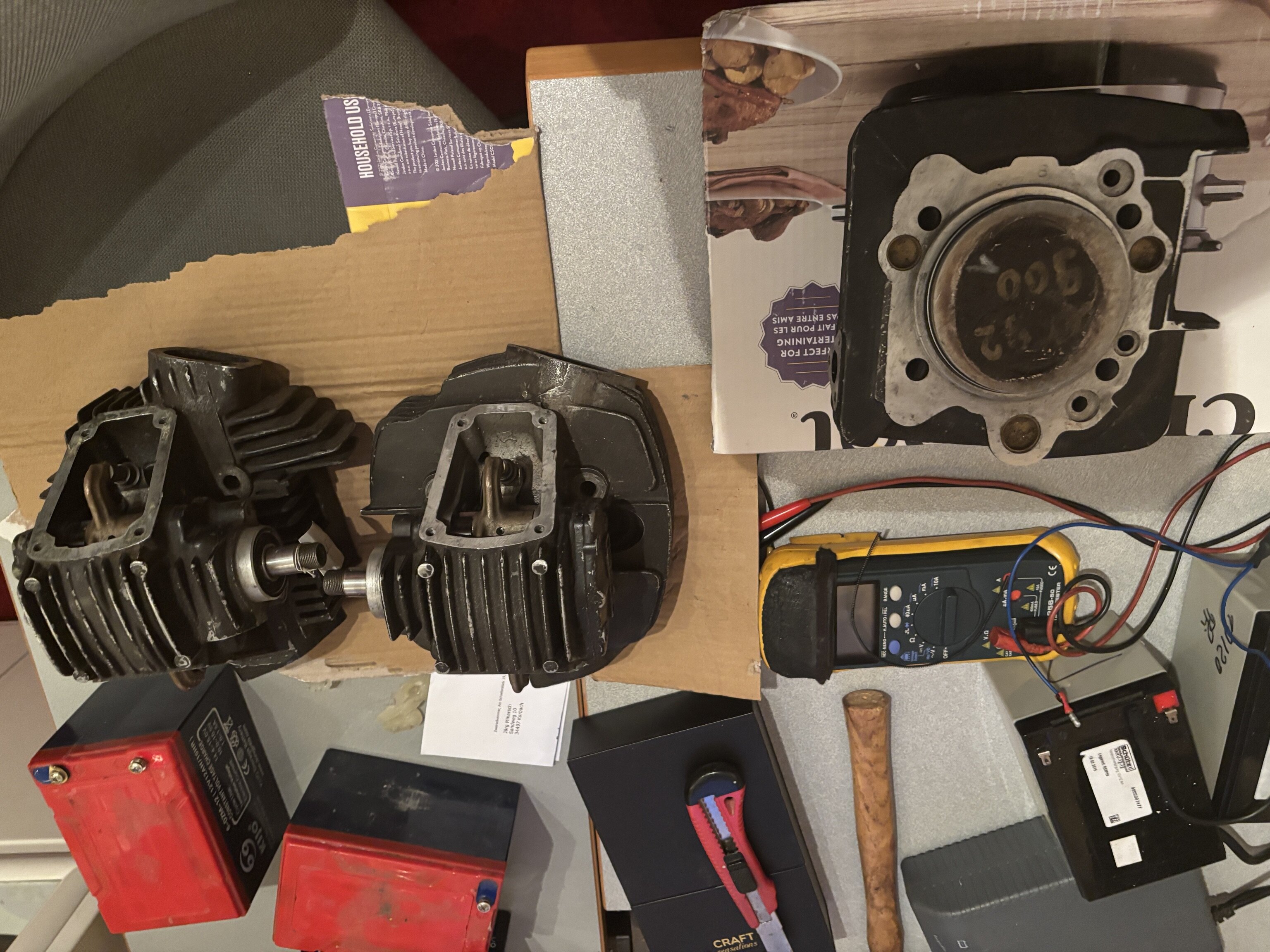 Gestern waren dann die Köpfe und der fehlende Zylinder in der Post, aber weiter wie auspacken bin ich da auch noch nicht gekommen.