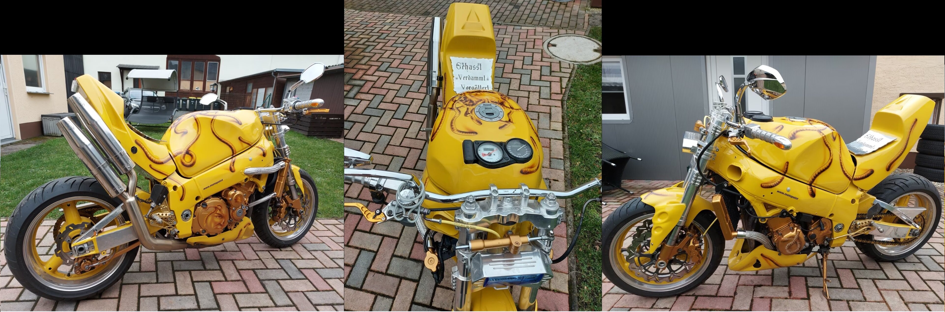 Passende Farbe hat sie ja schon, alleine der güldene Motor, ein Träumchen. Noch kurz zu @Duc-Schmidti in die Halle um nen Beifahrer-Sitz anzubringen - dann kann er auch mal vom Amiga lassen - und schon hat man ein feines Kontrastprogramm.