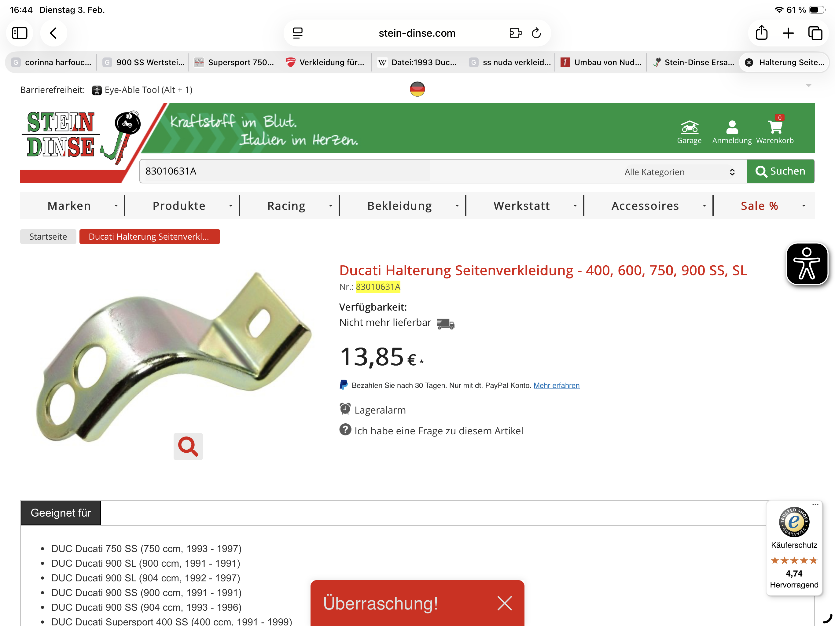 ich bin auf der Suche nach den hinteren Verkleidungshaltern samt Gummibuchsen für den Anbau der kleinen Verkleidung. Hat noch jemand diese Halter und kan sie mir verkaufen?