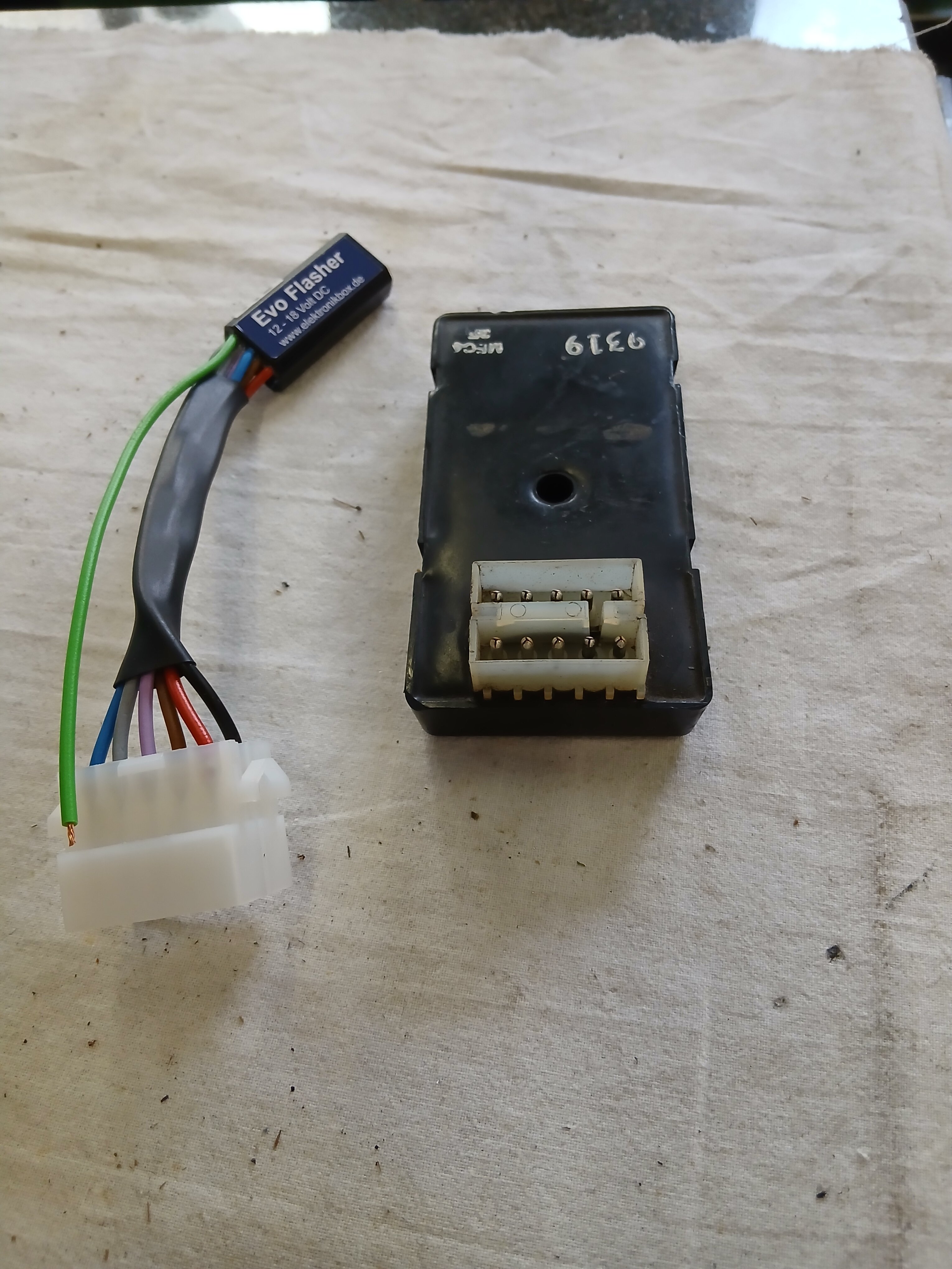 Ich habe dann mal versucht, das "Turn Signal Canceller Module" zu messen. Dabei tat sich auf der rechten Seite aber gar nichts. Die linke Seite habe ich noch nicht gemessen, das muß ich noch nachholen, um es zu verstehen.